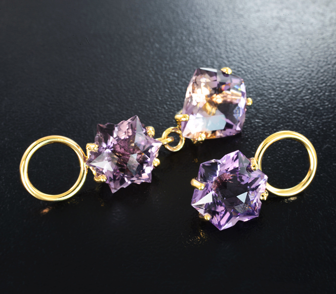Подвесы для серег с аметринами и аметистом авторской огранки