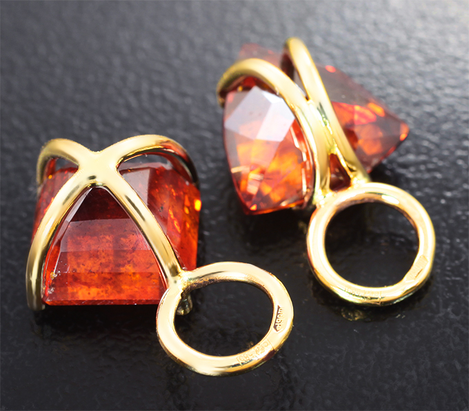 Вашему вниманию предлагаются подвесы для серег из желтого золота 585 пробы со сфалеритами! Размеры изделий 17 х 10 мм и 18 х 12 мм. Вес пары 3,15 г. Ниже приводятся ювелирные характеристики вставок.