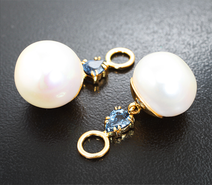 Вашему вниманию предлагаются подвески для серег из желтого золота 585 пробы с синими шпинелями и крупным морским жемчугом! Размеры изделия 28 х 13 мм. Вес пары 7,55 г. Ниже приводятся ювелирные характеристики вставок.