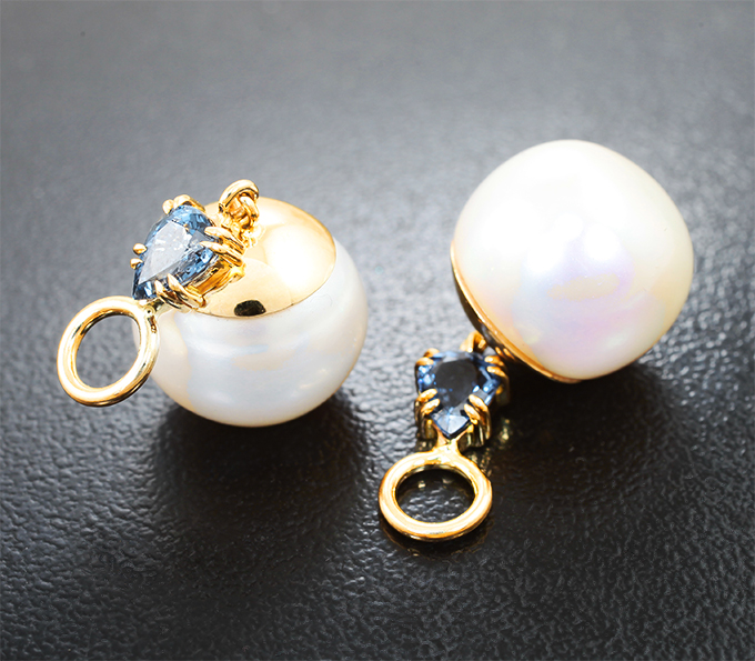 Подвески для серег с синими шпинелями 0,94 карата и крупным морским жемчугом 25,46 карата