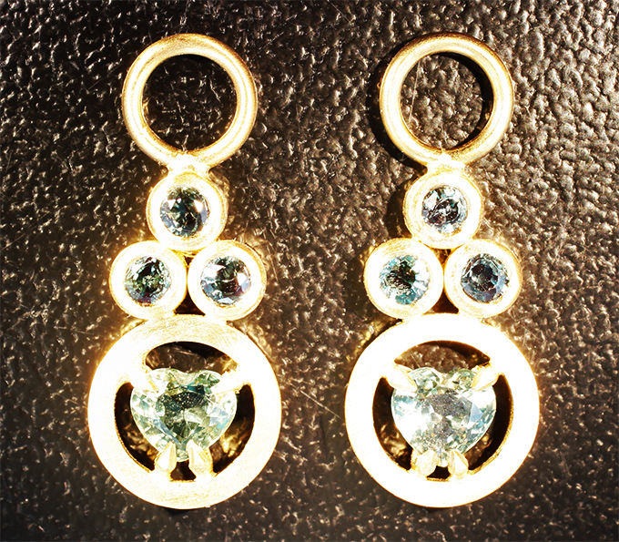 Вашему вниманию предлагаются подвесы для серег из желтого золота 585 пробы с сапфирами и александритами! Диаметр вставок 2,2 мм и 2,3 мм. Размеры изделия 21 х 8 мм. Вес пары 2,14 г. Ниже приводятся ювелирные характеристики сапфиров.