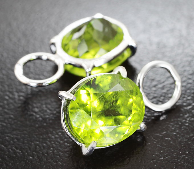 Вашему вниманию предлагаются подвесы для серег из белого золота 585 пробы с перидотами! Размеры изделия 18 х 9 мм. Вес пары 3,27 г. Ниже приводятся ювелирные характеристики вставок.