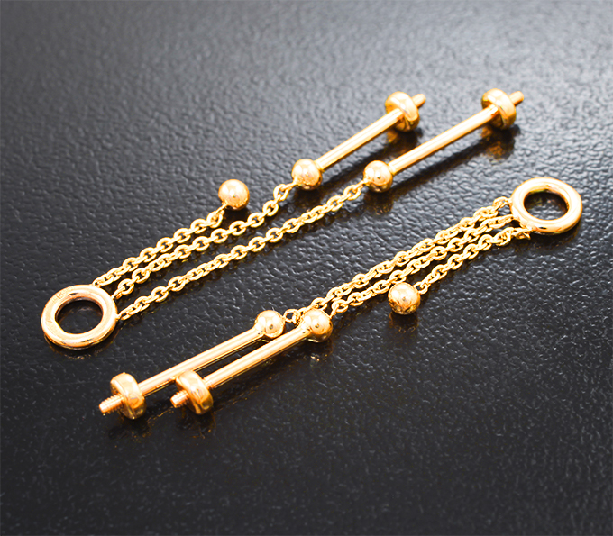 Вашему вниманию предлагаются подвесы для серег из желтого золота 585 пробы! Размеры изделия 41 х 7 мм. Вес пары 2,45 г.