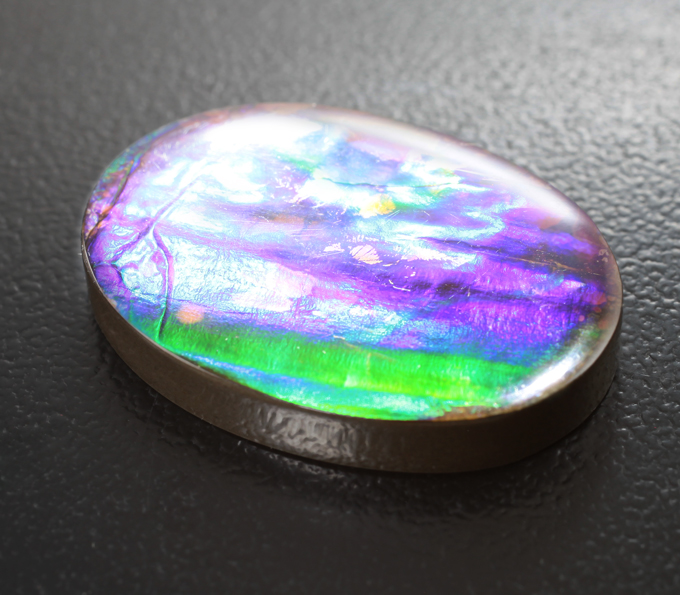 Описание: Вашему вниманию предлагается крупный аммолит! Поверхность камня защищена прозрачным лаком. Цветовая палитра: зеленый, синий и фиолетовый. Ниже приводятся ювелирные характеристики.